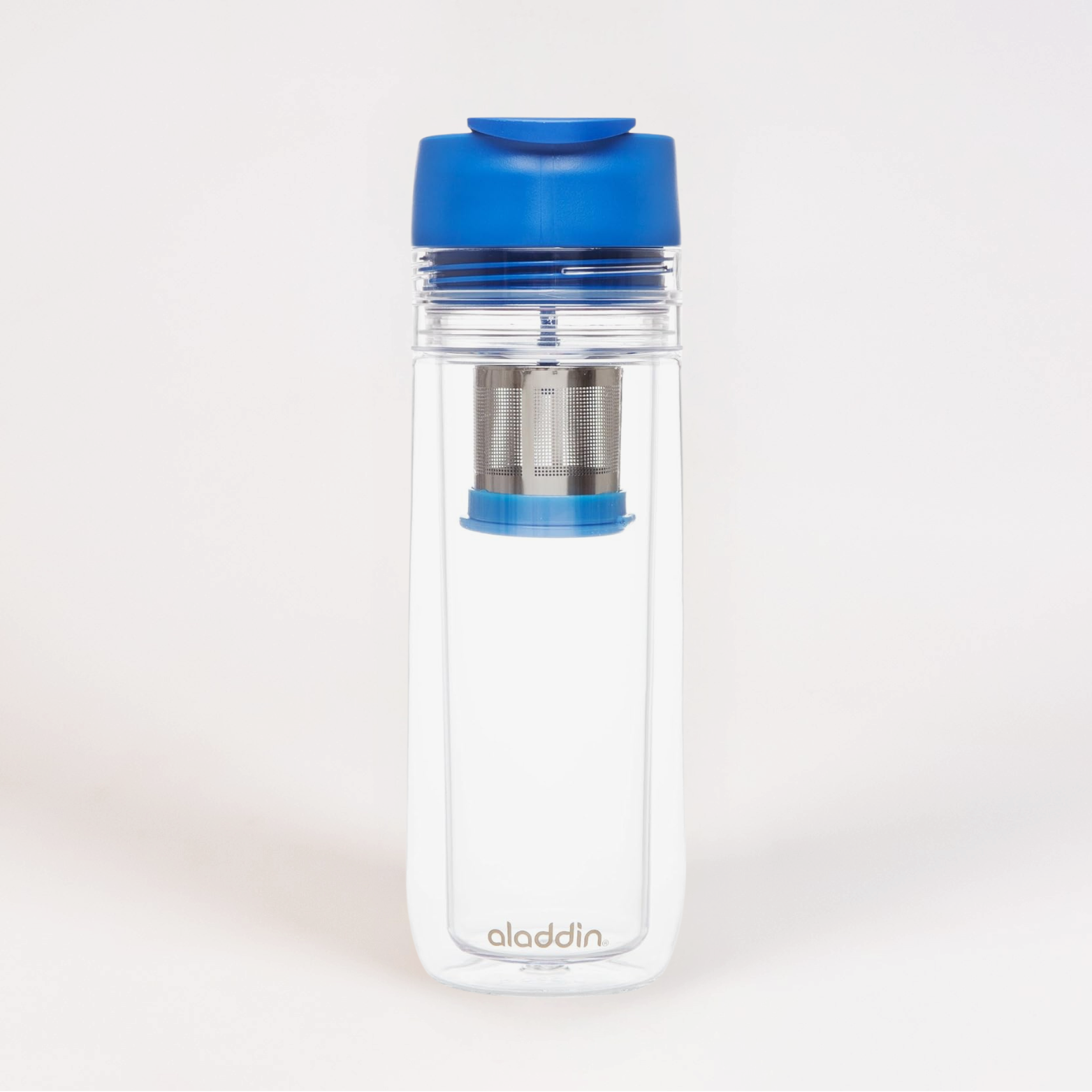 Infuse some love into your day. Designed to make tea lovers SWOON with joy, the Aladdin custom tea infuser lets you brew loose or bagged tea on the go just the way you like it. Just lower the drop-down infusion basket for steeping and raise it back up when it’s just right. The leak-resistant lid has a notch for tea bag strings (how thoughtful!), and the double-wall insulation keeps your drink plenty warm and your hands perfectly comfortable. The body is microwave-safe, and the entire mug can go in the dishwasher for effortless clean-up. Now you can have your tea your way, on the commute, at work or wherever your day takes you.