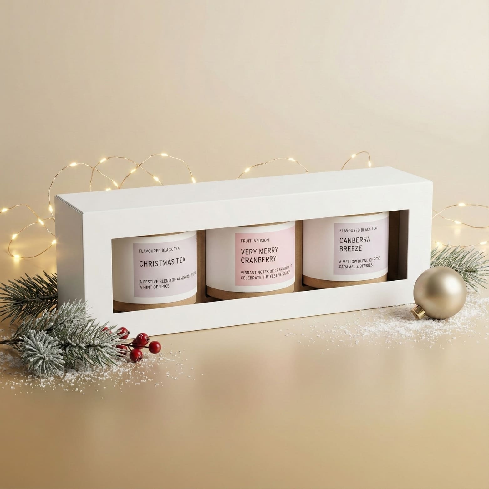 Unwrap the festive spirit with our Holiday Brews Box: A delightful trio of premium teas perfect for celebrating the season. Each 20g pack delivers carefully curated flavours that capture the warmth and joy of the holidays. Whether you're gifting to a tea lover or treating yourself, this thoughtfully assembled collection brings cosy moments and memorable flavours to your festive gatherings. Ideal for sharing, gifting, or stocking your tea cupboard with seasonal treasures.